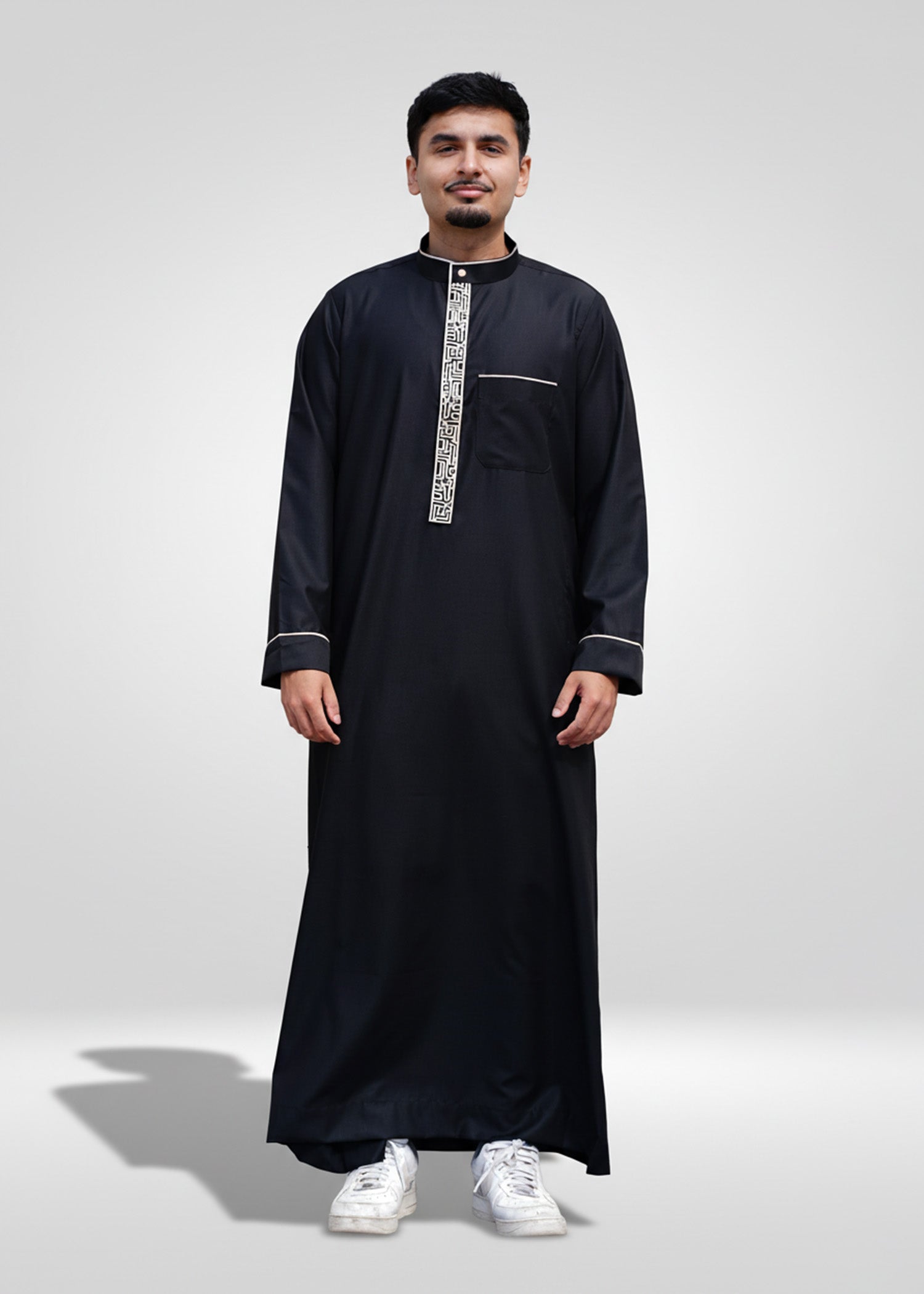 Black/Gold Embroidery Adult Thobe - 52 / Black/Gold / S is backordered and will ship as soon as it is back in stock.