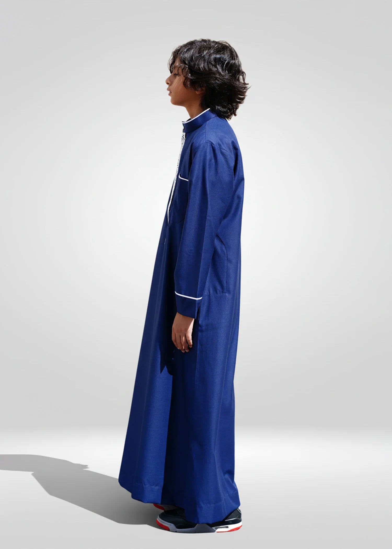 Navy Blue & Silver Kids Embroidery Thobe | Geometric Pattern Jubba