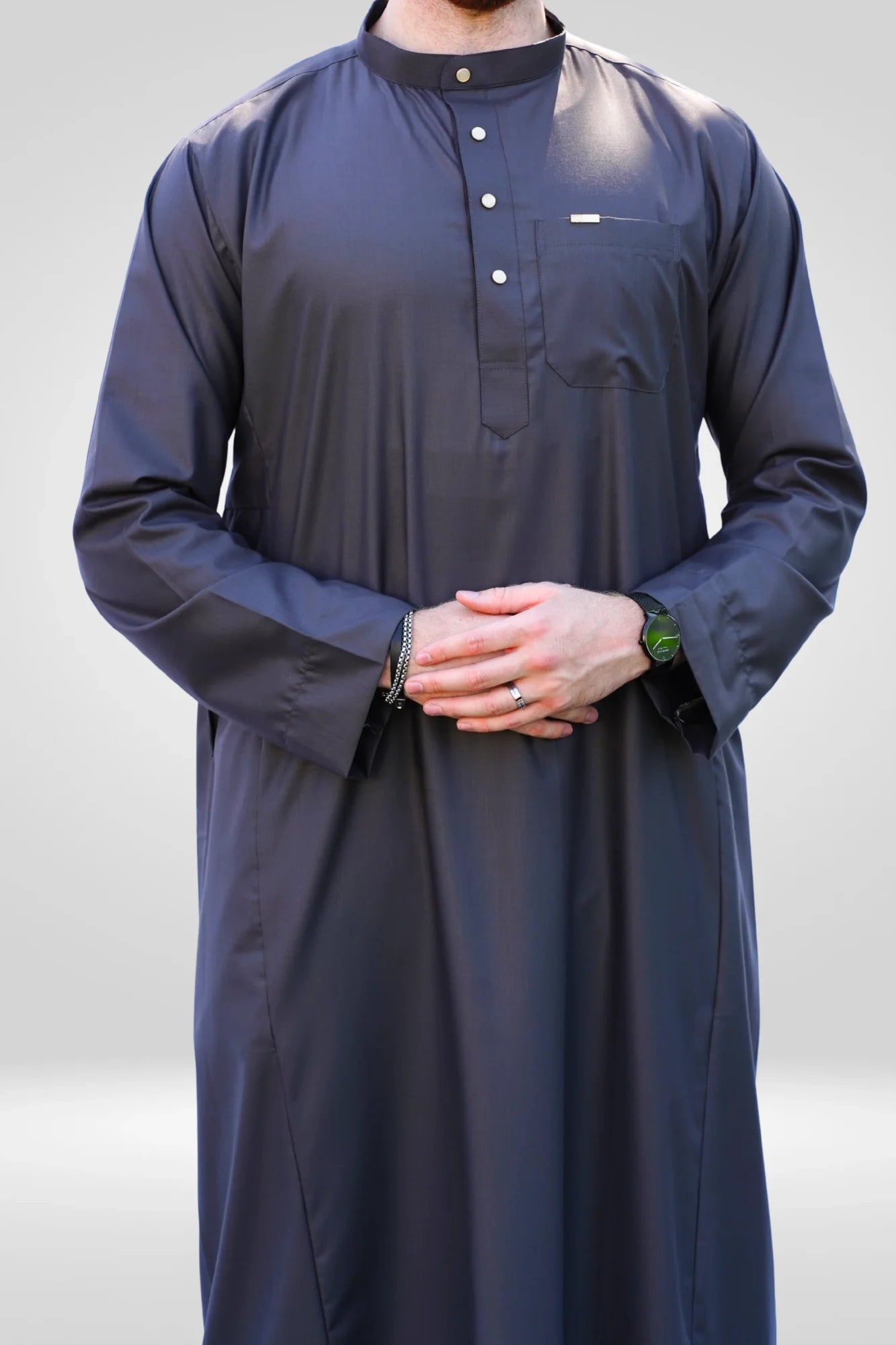 The ultimate staple for professional modest wear, the Plain Gray Thobe combines contemporary sophistication with all-day comfort. This premium men's Thobe features a versatile slate gray fabric that offers a refined, modern alternative to black. Essential for daily prayer, office settings, and semi-formal gatherings, this garment is a foundational piece for any discerning gentleman's Islamic attire collection.